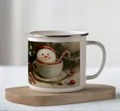 Ein verspieltes Weihnachtsmotiv: Ein Schneemann mit roter Mütze sitzt fröhlich in einer Tasse heißer Schokolade, verziert mit Zuckerstange. Warme Farben, nostalgischer Malstil und liebevolle Details machen dieses Bild zu einem Highlight für Winterdeko und Geschenkideen. Ideal für alle, die Weihnachtskunst, Winterillustrationen und süße Motive lieben. Perfekt als Weihnachtsbild, Snowman Poster, Retro Christmas Art, Holiday Decor, festliche Wandbilder, Winterkunstwerk, Geschenkidee und gemütliche Home-Deko.