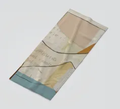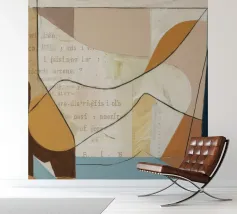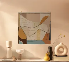 Dieses Kunstwerk stellt eine abstrakte Komposition mit geschwungenen Linien und Formen dar, die in sanften Farben wie Beige, Braun und Blau gehalten sind. Die Komposition ist anmutig und fließend und erweckt ein Gefühl von Bewegung und Eleganz.