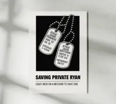 Saving Private Ryan Druck, Alternative Film Poster, WW2, Armee Hundemarken, Minimalist, Wandkunst, Schwarz-Weiß-Qualität Drucke, Film-Fans Geschenk