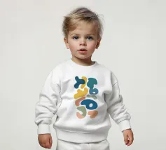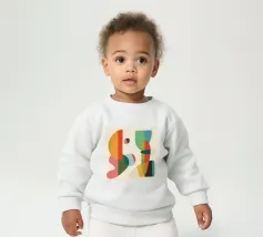 Unsere Baby Sweatshirts bestehen aus 85 % Bio-Baumwolle und 15 % recyceltem Polyester.