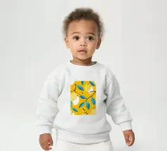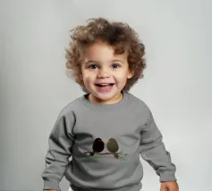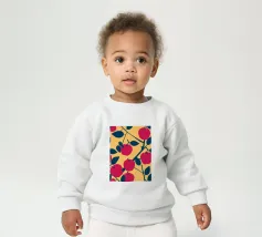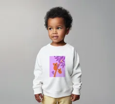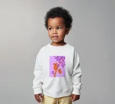 Unsere Baby Sweatshirts bestehen aus 85 % Bio-Baumwolle und 15 % recyceltem Polyester.