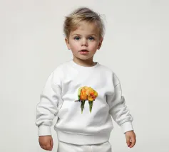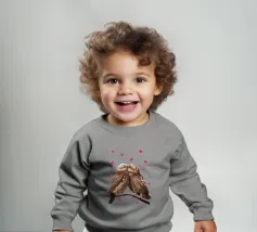 Unsere Baby Sweatshirts bestehen aus 85 % Bio-Baumwolle und 15 % recyceltem Polyester.
