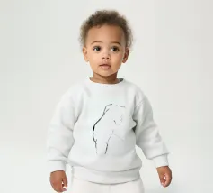 Unsere Baby Sweatshirts bestehen aus 85 % Bio-Baumwolle und 15 % recyceltem Polyester.