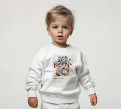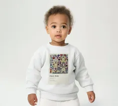 Unsere Baby Sweatshirts bestehen aus 85 % Bio-Baumwolle und 15 % recyceltem Polyester.