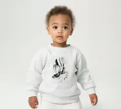 Unsere Baby Sweatshirts bestehen aus 85 % Bio-Baumwolle und 15 % recyceltem Polyester.