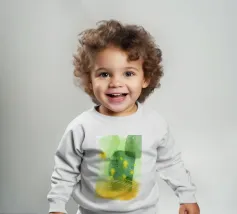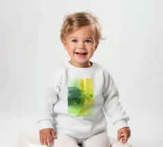 Unsere Baby Sweatshirts bestehen aus 85 % Bio-Baumwolle und 15 % recyceltem Polyester.