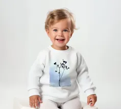 Unsere Baby Sweatshirts bestehen aus 85 % Bio-Baumwolle und 15 % recyceltem Polyester.