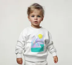Unsere Baby Sweatshirts bestehen aus 85 % Bio-Baumwolle und 15 % recyceltem Polyester.