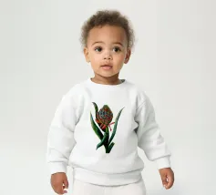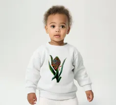 Unsere Baby Sweatshirts bestehen aus 85 % Bio-Baumwolle und 15 % recyceltem Polyester.