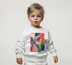 Unsere Baby Sweatshirts bestehen aus 85 % Bio-Baumwolle und 15 % recyceltem Polyester.