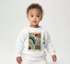 Unsere Baby Sweatshirts bestehen aus 85 % Bio-Baumwolle und 15 % recyceltem Polyester.