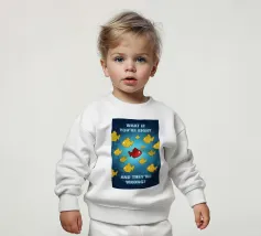 Unsere Baby Sweatshirts bestehen aus 85 % Bio-Baumwolle und 15 % recyceltem Polyester.