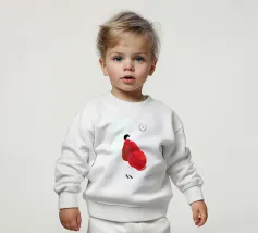 Unsere Baby Sweatshirts bestehen aus 85 % Bio-Baumwolle und 15 % recyceltem Polyester.