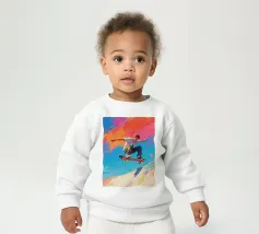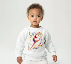 Unsere Baby Sweatshirts bestehen aus 85 % Bio-Baumwolle und 15 % recyceltem Polyester.