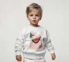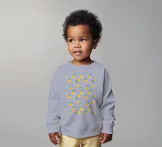 Unsere Baby Sweatshirts bestehen aus 85 % Bio-Baumwolle und 15 % recyceltem Polyester.