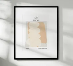 Ein auffälliges abstraktes Design mit einem harmonischen Zusammenspiel kreisförmiger Formen in metallischem Gold, tiefem Marineblau, zartem Pfirsich und gedämpftem Beige. Diese minimalistische Komposition kombiniert kühne geometrische Elemente mit zarten vertikalen Linien, wodurch ein Gefühl von Ausgewogenheit und Eleganz entsteht. Subtile Texturen und Goldtupfer verleihen diesem Stück Tiefe und Raffinesse und machen es zu einem perfekten Mittelpunkt für moderne und zeitgenössische Interieurs.