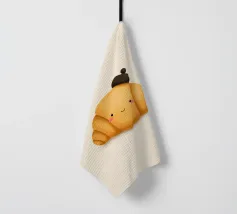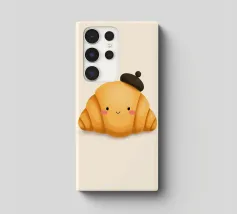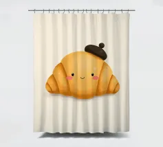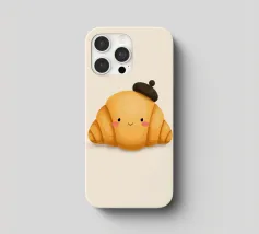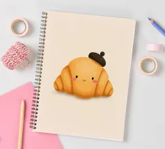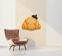 Dieses entzückende Croissant-Design zeigt einen lächelnden Charakter mit rosa Bäckchen und einem schwarzen französischen Beret. Perfekt für Liebhaber von Kawaii-Illustrationen und französischer Backkunst, eignet sich dieses Motiv hervorragend für Frühstücks-Cafés, Bäckereien oder als charmantes Dekorationsstück in Ihrer Küche. Das verspielte Design bringt Freude und einen Hauch von Paris in jeden Raum.