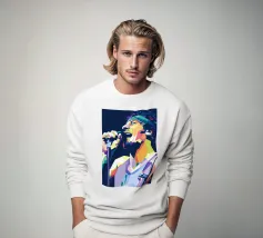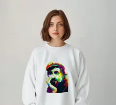 Hank Williams Jr. in WPAP (Wedha's Pop Art Portrait) ist eine lebendige und geometrische Darstellung des legendären Country-Sängers. In diesem Kunststil werden kräftige, kontrastreiche Farben und scharfe, kantige Formen verwendet, um ein auffälliges, modernes und abstraktes Porträt zu schaffen, das gleichzeitig seine erkennbaren Merkmale beibehält.