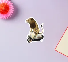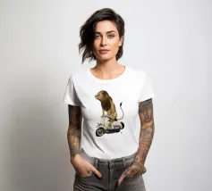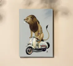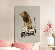 In Anlehnung an Cecil und meinen vorherigen Rooooaaar! Druck, der zweite in der Serie von großen Katzen auf kleinen Motorrädern!!! Der Löwe und die Lamb-Retta!