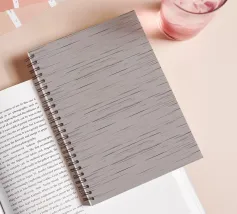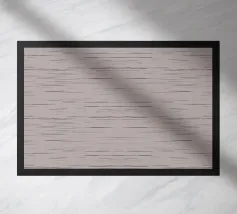 Elegantes und minimalistisches Heidemuster mit dünnen abstrakten Streifen in Schwarz und Grau auf taupegrauem Hintergrund.