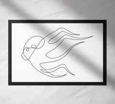Diese eindrucksvolle Schwarz-Weiß-Illustration fängt die fließende Anmut eines Oktopus in einer einzigen, durchgehenden Linie ein. Das minimalistische Design hebt die fließenden Tentakel und die organische Form des Tieres hervor und schafft so ein kühnes und doch zartes Statement. Perfekt für moderne Innenräume, ideal für Liebhaber von Meeresbewohnern, zeitgenössischer Kunst und klarer Ästhetik.