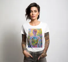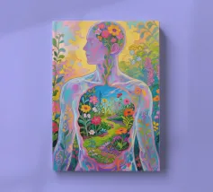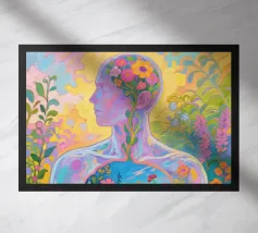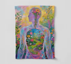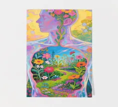 Transparent Mensch mit einem Miniaturgarten mit Fauvismus Malerei Kunststil