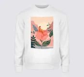 Sanft auf einer blühenden Blume sitzend, ruht sie unter der aufgehenden Sonne, umgeben von fließenden Blättern und sanft bemalten Hügeln. Alles in dieser Welt fühlt sich ruhig und absichtlich an - ein imaginärer Ort, an dem Wachstum still und von innen heraus geschieht. Ein friedliches Porträt des Werdens, der Zugehörigkeit und des Aufblühens zu den eigenen Bedingungen.