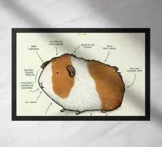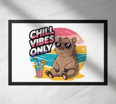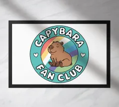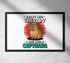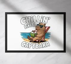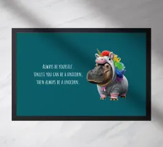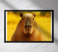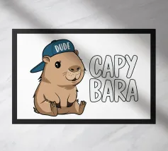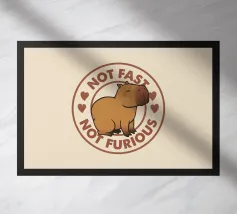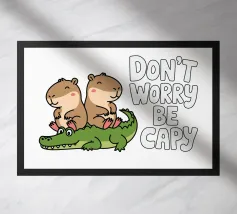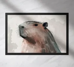 Eine niedliche Wasserschwein-Illustration, umgeben von einem motivierenden Text. Die Worte ermutigen zur Individualität mit einer humorvollen Wendung, die den Charme von Wasserschweinen hervorhebt.