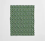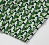 Das Bild zeigt ein komplexes, sich wiederholendes geometrisches Muster mit ineinandergreifenden Formen. Eine Mischung aus Grün, Schwarz und Weiß dominiert die Komposition und erzeugt einen visuell dynamischen Effekt.