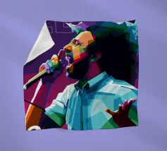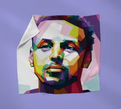 Ein lebhaftes und geometrisches Porträt von Sinead O'Connor im WPAP-Stil mit kühnen, kantigen Formen und einer auffälligen Reihe heller, kontrastreicher Farben. Das Kunstwerk fängt ihre ikonischen Merkmale, wie ihren rasierten Kopf, ihre stechenden Augen und ihren starken Gesichtsausdruck, mit scharfen, fragmentierten Farbblöcken ein. Die Komposition betont Tiefe und Emotionen und behält gleichzeitig die unverwechselbare kubistische Pop-Art-Ästhetik von WPAP bei, wodurch eine visuell dynamische und moderne Hommage an die legendäre Sängerin entsteht.
