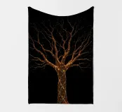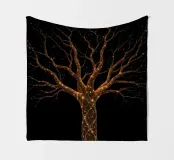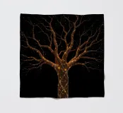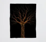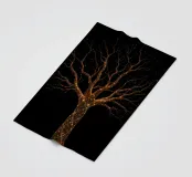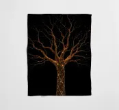 Ein wunderschön detaillierter Baum mit verschlungenen Ästen, die von schimmernden Lichtern beleuchtet werden und einen bezaubernden Effekt vor einem tiefschwarzen Hintergrund erzeugen - perfekt, um die Ästhetik von Mobilgeräten zu verbessern.