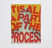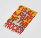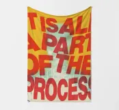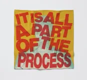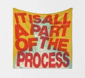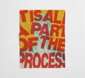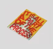 "Die Phrase IS ALL A PART OF THE PROCESS' ist in einem dynamischen, leicht chaotischen Layout mit roter Typografie in Notlage vor einem strukturierten gelben Hintergrund angeordnet, mit einer subtilen Silhouette hinter dem Text. Die raue Textur und die unvollkommenen Buchstabenformen vermitteln ein Gefühl von Authentizität und Widerstandsfähigkeit.",
