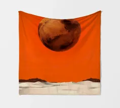 Diese digitale Illustration zeigt den waghalsigen Absprung von zwei mutigen Fallschirmspringern über einer fremden roten Wüstenlandschaft. Das Terrain unter ihnen ist eine riesige, karge Fläche aus purpurroten Sanddünen.