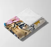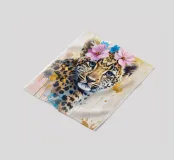 Dieses moderne Design zeigt eine anmutige Leopardin mit Blüten auf dem Kopf. In zarten Aquarellfarben und mit goldenen Akzenten gestaltet, verbindet es natürliche Schönheit mit künstlerischer Eleganz. Die weichen Farbverläufe und der abstrakte Stil verleihen jedem Raum eine romantisch-verspielte und zugleich stilvolle Atmosphäre – ein echter Blickfang für Ihr Zuhause.