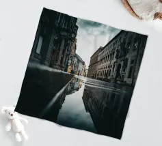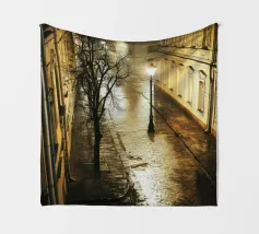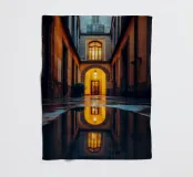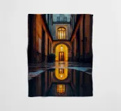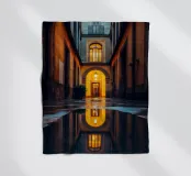 Diese Fotografie fängt den nächtlichen Zauber Barcelonas ein, wo die Reflexionen der goldenen Lichter eine stille Gasse nach dem Regen beleuchten. Die warme und friedliche Atmosphäre lädt dazu ein, dem Alltag zu entfliehen und in die Intimität dieser bezaubernden Stadt zu reisen.