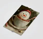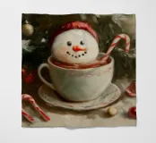 Ein verspieltes Weihnachtsmotiv: Ein Schneemann mit roter Mütze sitzt fröhlich in einer Tasse heißer Schokolade, verziert mit Zuckerstange. Warme Farben, nostalgischer Malstil und liebevolle Details machen dieses Bild zu einem Highlight für Winterdeko und Geschenkideen. Ideal für alle, die Weihnachtskunst, Winterillustrationen und süße Motive lieben. Perfekt als Weihnachtsbild, Snowman Poster, Retro Christmas Art, Holiday Decor, festliche Wandbilder, Winterkunstwerk, Geschenkidee und gemütliche Home-Deko.
