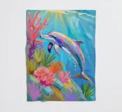 Ein anmutiger Delfin gleitet durch das kristallklare Wasser, gefangen in einem Moment der Freiheit und Verspieltheit. Diese Illustration strahlt sowohl Ruhe als auch Bewegung aus - eine Hommage an die Unterwasserwelt, in der Träume und Erinnerungen zusammenkommen. Dieses digitale Gemälde wurde in einem einzigartigen, lockeren Stil erstellt, der an Öl auf Leinwand erinnert, mit sichtbaren Pinselstrichen und einem Hauch von Fantasie. ~ Konzipiert von Trinkets NL Design Studio, visualisiert mit AI