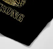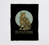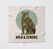 Retro Vibes holst du dir mit diesem handgezeichneten, majestätisch ausshenden, sitzenden Leoparden mit toller Goldtextur und mint-grünem Kreis im Hintergrund. Dazu das Statement: Wild and strong. Ausdrucksstarker Schriftzug. Folge deinem Herzen und deinem Naturell.