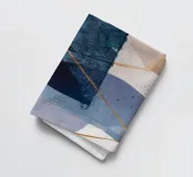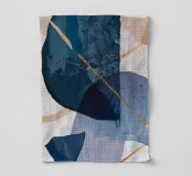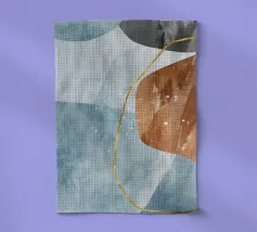 Weiche geometrische Formen in kühlem Blau und Hellbraun halten sich in abstrakter Ruhe die Waage.