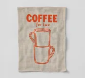 Illustration Zwei Kaffeetassen – das schlichte Design mit orangem Schriftzug „coffee for two“ lädt zum gemeinsamen Start in den Tag ein. Minimalistische Linienzeichnung trifft auf warme Beigetöne und typografische Klarheit – perfekt für die Morgenroutine mit Stil.