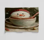 Ein verspieltes Weihnachtsmotiv: Ein Schneemann mit roter Mütze sitzt fröhlich in einer Tasse heißer Schokolade, verziert mit Zuckerstange. Warme Farben, nostalgischer Malstil und liebevolle Details machen dieses Bild zu einem Highlight für Winterdeko und Geschenkideen. Ideal für alle, die Weihnachtskunst, Winterillustrationen und süße Motive lieben. Perfekt als Weihnachtsbild, Snowman Poster, Retro Christmas Art, Holiday Decor, festliche Wandbilder, Winterkunstwerk, Geschenkidee und gemütliche Home-Deko.