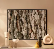 Eine meditative Serie von Aquarellbildern, die sich mit den komplizierten Strukturen und tonalen Rhythmen von Baumrinde befassen. Mit einer gedämpften Palette von Schwarz-, Braun- und Grautönen fängt jedes Werk den organischen Fluss und die geschichteten Oberflächen der Waldstämme ein. Die vertikalen Kompositionen spiegeln die ruhige Wiederholung der Natur wider und bieten sowohl Struktur als auch Weichheit durch ausdrucksstarke Abstraktion.