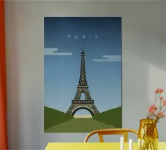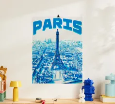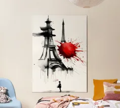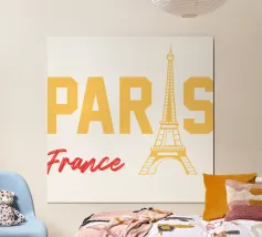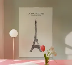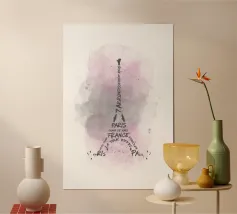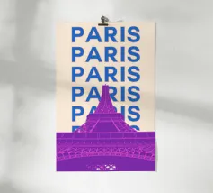 Das bekannte Wahrzeichen von Paris, der Eiffelturm, in einem sehr modernen Design. Kunstvolles Werk mit typografischen Elementen.
