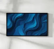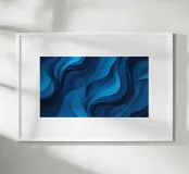 Lebendige blaue Wellen verschlingen sich in sanften, fließenden Mustern und bilden einen abstrakten Hintergrund, der sich perfekt als Desktop-Hintergrund eignet. Dieses Design betont die Tiefe und Bewegung und wertet jeden digitalen Raum auf.