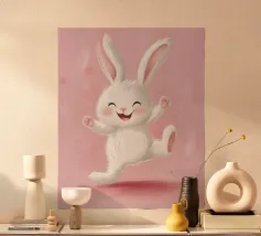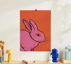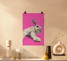Dieses freche Poster mit einem niedlich illustrierten schwarzen Hasen auf knallpinkem Hintergrund bringt maximalen Kontrast zwischen Zuckeroptik und klarer Ansage. Der lächelnde Hase zeigt ganz nonchalant den Mittelfinger – ein augenzwinkerndes Statement für alle mit Humor, Haltung und einer Schwäche für ironische Tierkunst. Perfekt für Büro, WG oder kreative Räume.