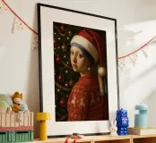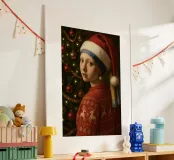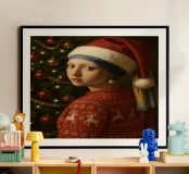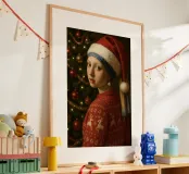 MÄDCHEN MIT PERLENOHRRING UND WEIHNACHTSMANNMÜTZE Hahnemühle