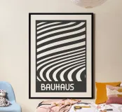 Dieses hypnotisierende Plakat zeigt eine elegante Interpretation der Op Art mit kühnen, geschwungenen weißen Linien, die eine starke Illusion von dreidimensionaler Tiefe und dynamischer Bewegung vor einem dunklen, kohlegrauen Hintergrund erzeugen. Das gestreifte Muster scheint sich in einen Fluchtpunkt zu verflüchtigen und verleiht der Komposition eine intensive visuelle Energie. Der Schriftzug "BAUHAUS" ist am unteren Rand des Plakats in einer klaren, weißen, serifenlosen Schrift angebracht. Dieses hochwertige Digitalposter wird mit einer Auflösung von 7000x5000 Pixeln und 300 dpi geliefert, was eine außergewöhnliche Klarheit für ein auffallendes, modernes Statement gewährleistet. Tags :