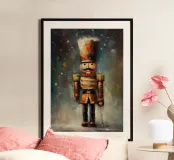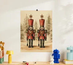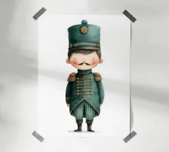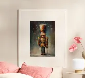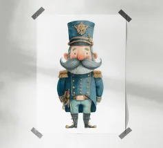 Ein traditionelles Weihnachtsmotiv: Ein stolzer Nussknacker-Soldat in prachtvoller Uniform steht im Schnee, während Schneeflocken die Szene verzaubern. Dieses Symbol der Festtage verkörpert Nostalgie, Tradition und den Zauber der Adventszeit. Mit seinen kräftigen Farben und detailreichen Elementen bringt das Motiv festliche Eleganz in jedes Zuhause. Perfekt für Wandbilder, Tassen, Kissen oder Textilien – ein ideales Geschenk für Liebhaber klassischer Weihnachtskunst.
