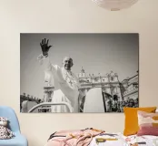 Papst Franziskus winkt den Gläubigen im Vatikan in Rom zu Hahnemühle