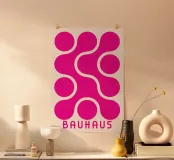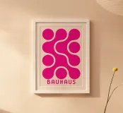 Ein auffallendes und modernes abstraktes Poster mit einem kontinuierlichen, organisch-geometrischen Muster, das als "Metaball" oder "Blob"-Kunst bekannt ist und in einem einzigen, intensiv leuchtenden Pink (Magenta) gehalten ist. Die geschwungenen, ineinander greifenden Formen erzeugen einen dynamischen visuellen Fluss und stehen in starkem Kontrast zu dem weichen, neutralen Hintergrund. Diese zeitgenössische Interpretation bringt die geometrische Einfachheit des Bauhauses in eine fließende, trendige Ästhetik. Der Schriftzug "BAUHAUS" ist am unteren Rand sauber zentriert. Diese hochwertige digitale Kunstdatei (7000x5000 Pixel, 300 dpi) garantiert einen scharfen, satten und einzigartig stilvollen Druck.